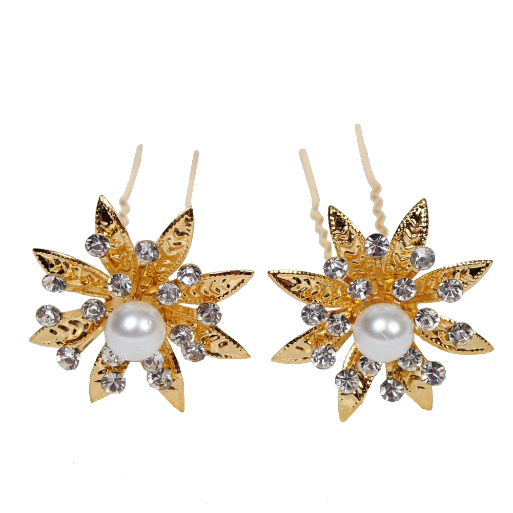 2 Haarnadeln Perlen Rot Gold Strass Blume Braut Hochzeit Ball Haarschmuck