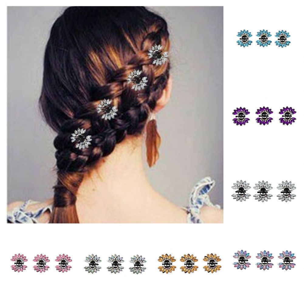 3 x Mini Haarklammern in Blüten Form mit Strass-Steinen bestückt Schimmer