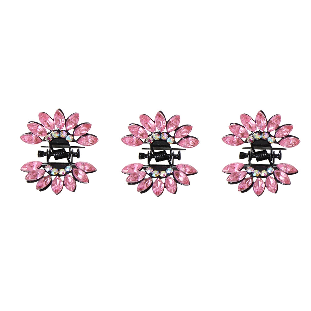 3 x Mini Haarklammern in Blüten Form mit Strass-Steinen bestückt Bunt