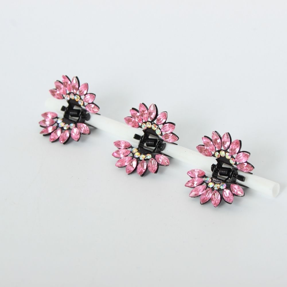 3 x Mini Haarklammern in Blüten Form mit Strass-Steinen bestückt