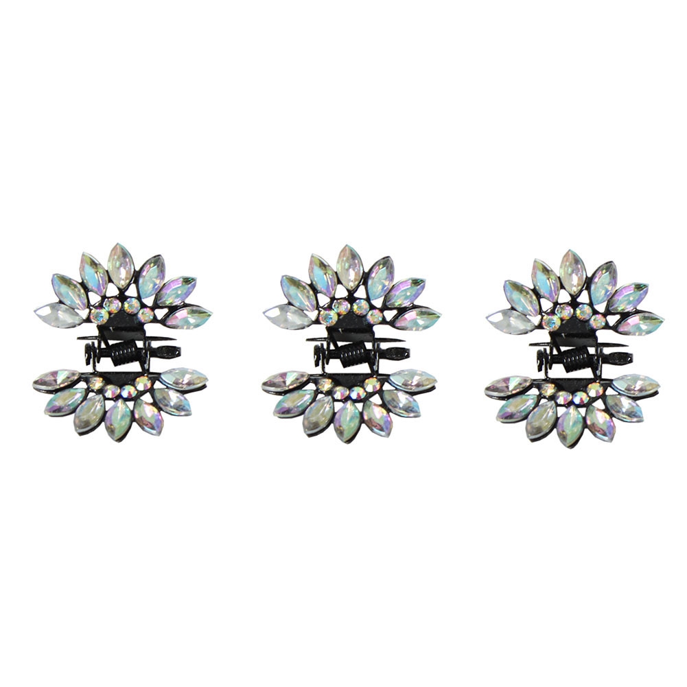 3 x Mini Haarklammern in Blüten Form mit Strass-Steinen bestückt Silber