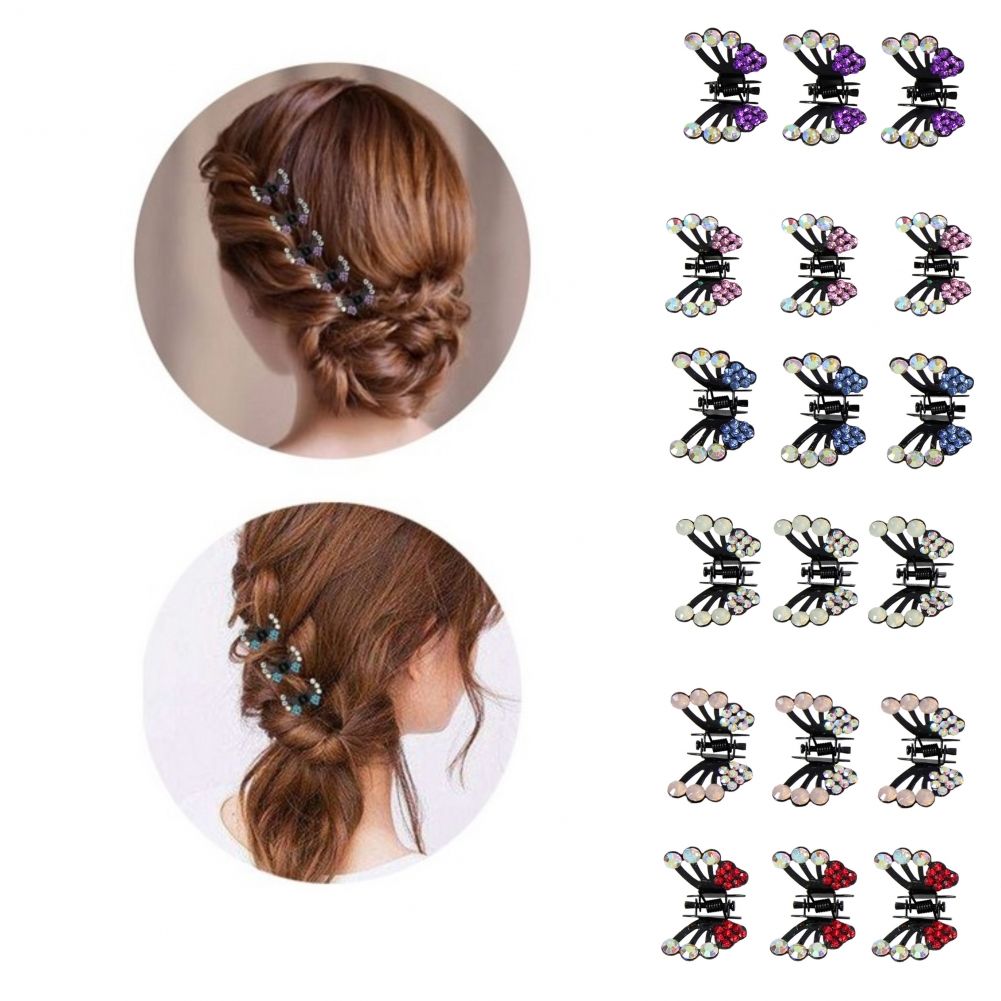 3 x Mini Haarklammern in Schmetterling Form mit Strass-Steinen bestückt Schimmer
