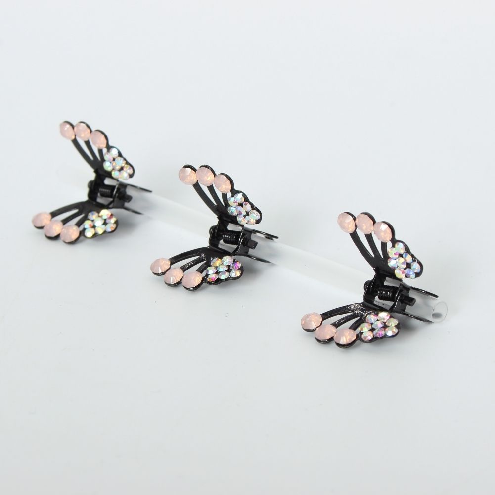 3 x Mini Haarklammern in Schmetterling Form mit Strass-Steinen bestückt