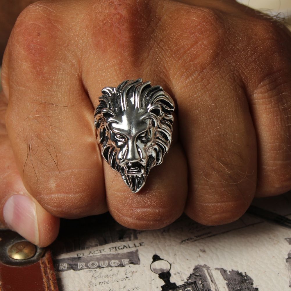 3D Edelstahl Ring L�we L�wenkopf Silber