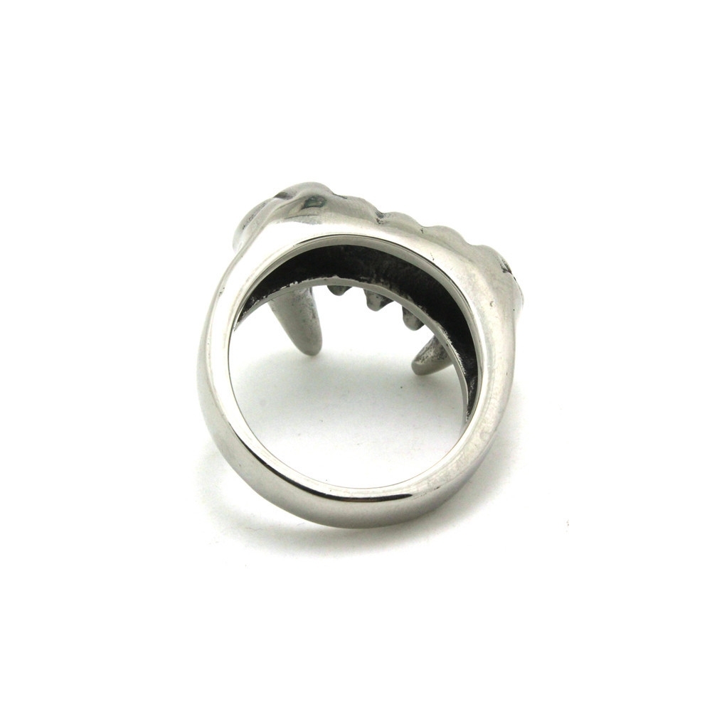 3D Edelstahl Ring Reißzähne Vampirzähne Gr. 66 = 21 mm Silber