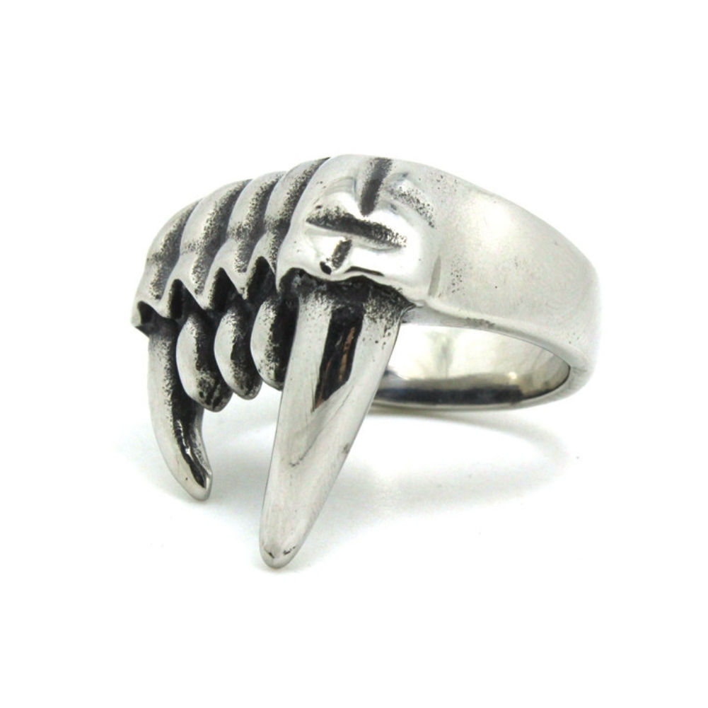 3D Edelstahl Ring Reißzähne Vampirzähne Silber