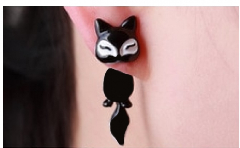 3D Fuchs Fox Eule Bär Ohrstecker Ohrringe Bär Schwarz