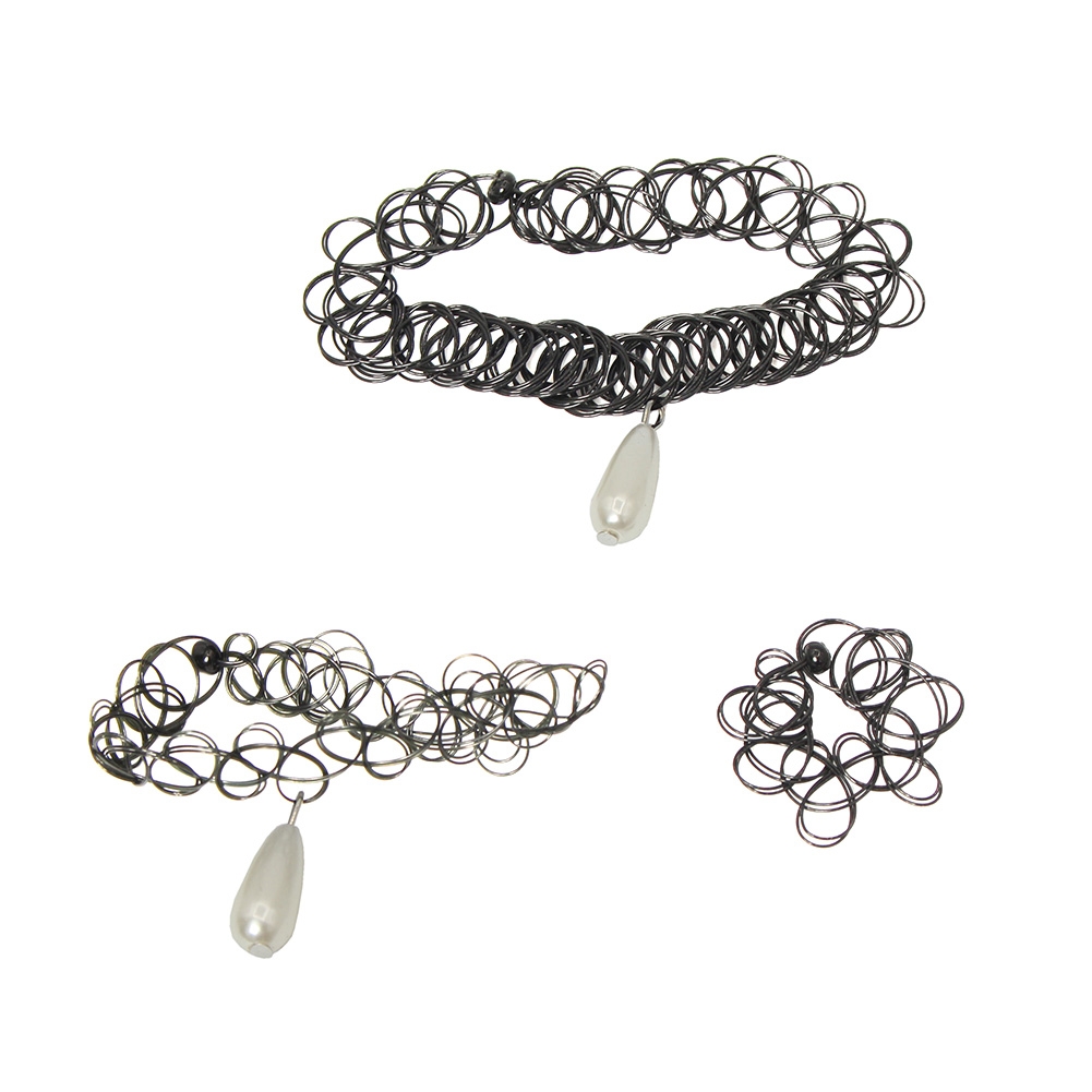3er Set Halsband Armband Ring Schwarz