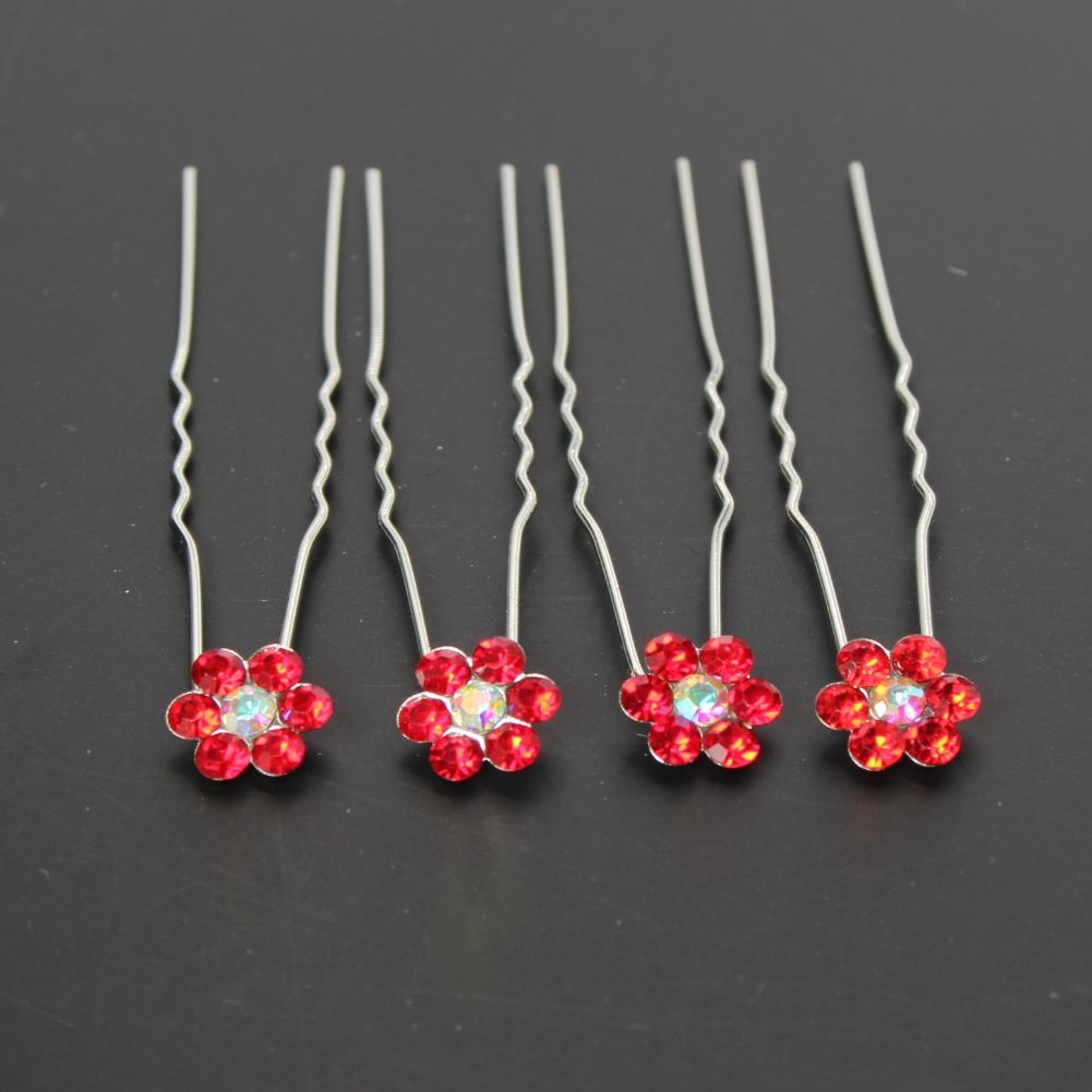 4 Haarnadeln mit Strass Blüten Design in diversen Farben