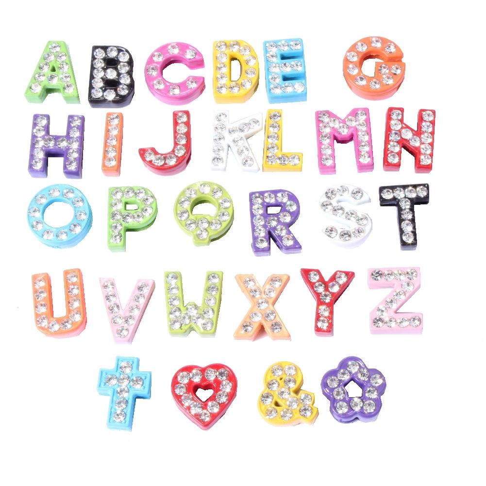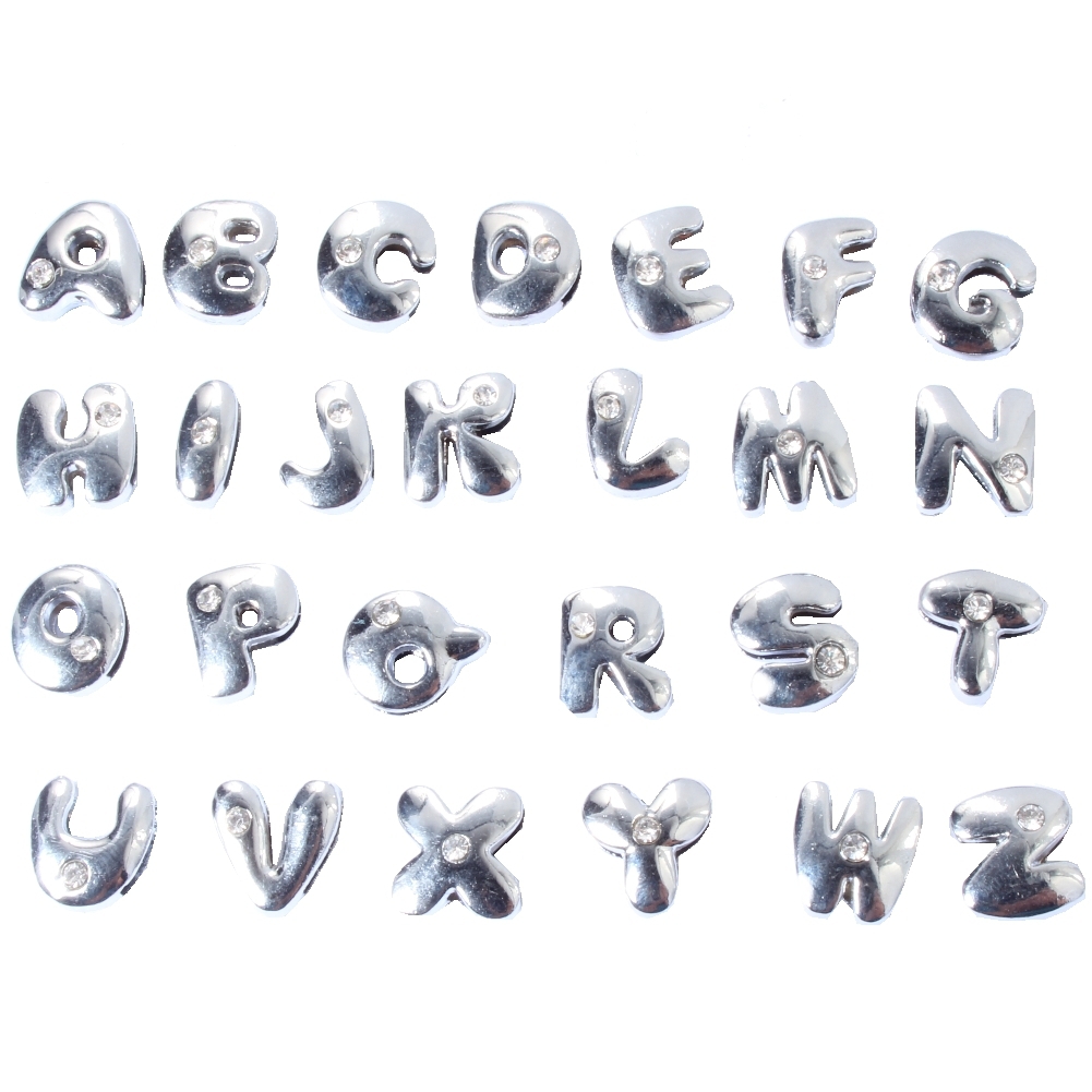 Glitzernde Strassbuchstaben zum Aufschieben auf Armbänder.