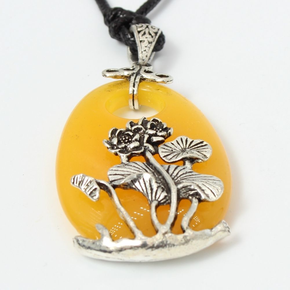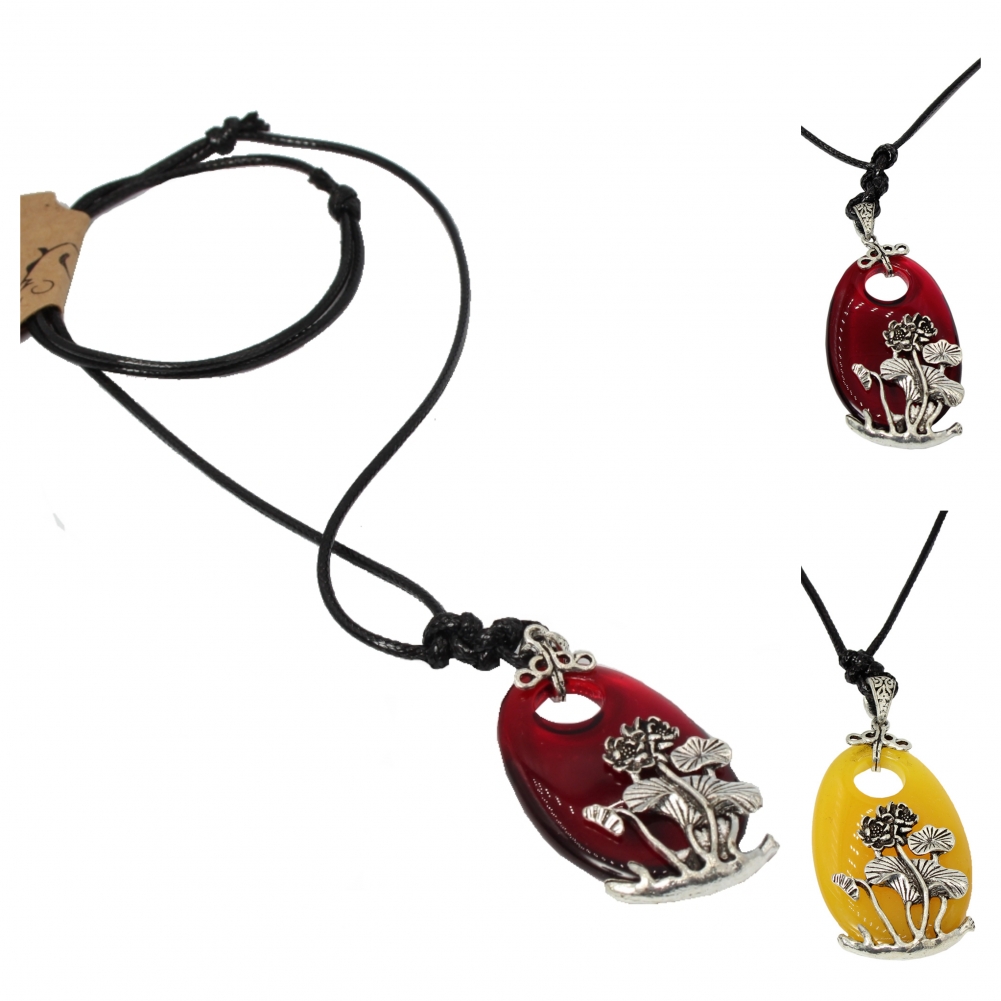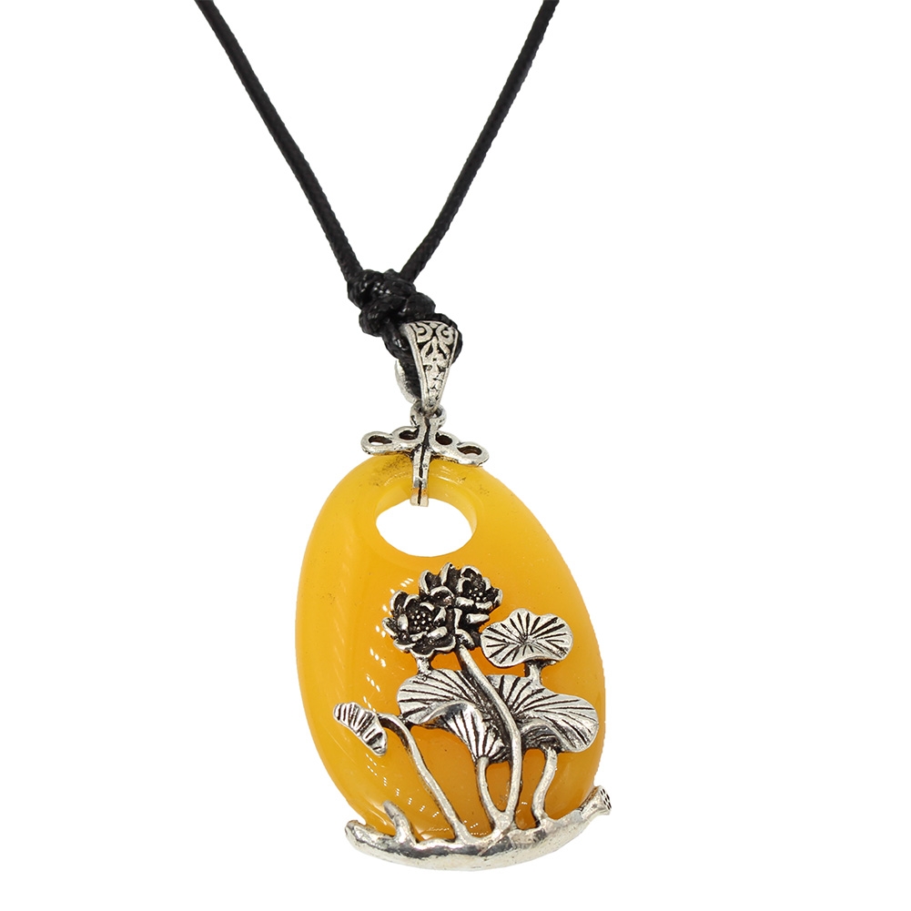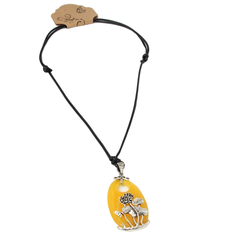 Bernstein Style Halskette mit Blumen Anhänger Handarbeit Vintage