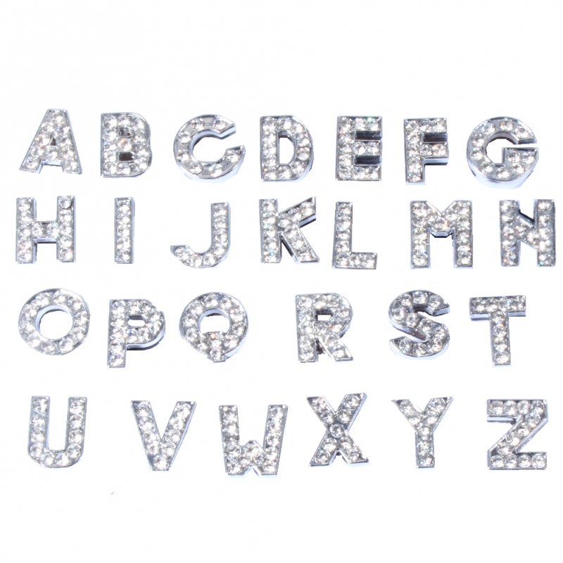 Glitzernde Strassbuchstaben zum Aufschieben auf Armbänder und Halsbänder.Der Schlitz für den Träger hat die Abmessungen ca. 0,2 cm x ca. 0,8 - 0,9 cm.Ä,Ö,Ü sind leider nicht erhältlich !!!