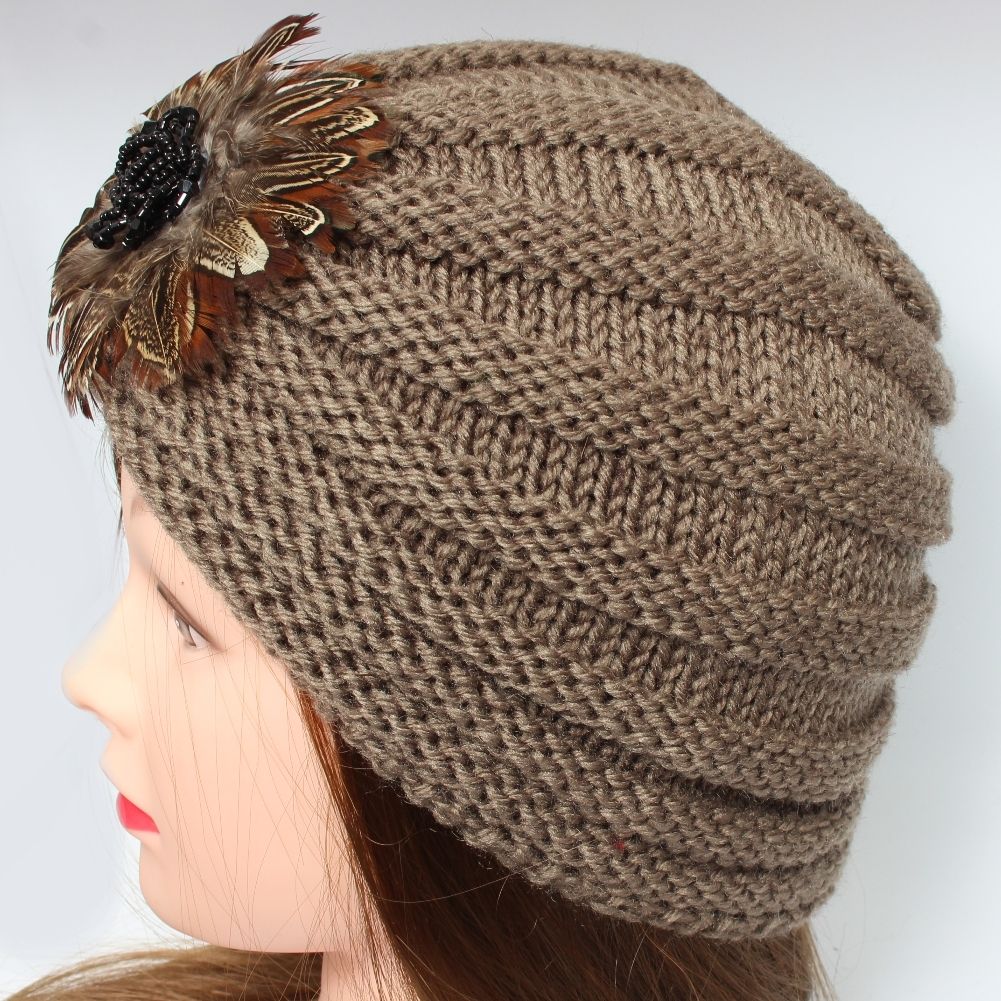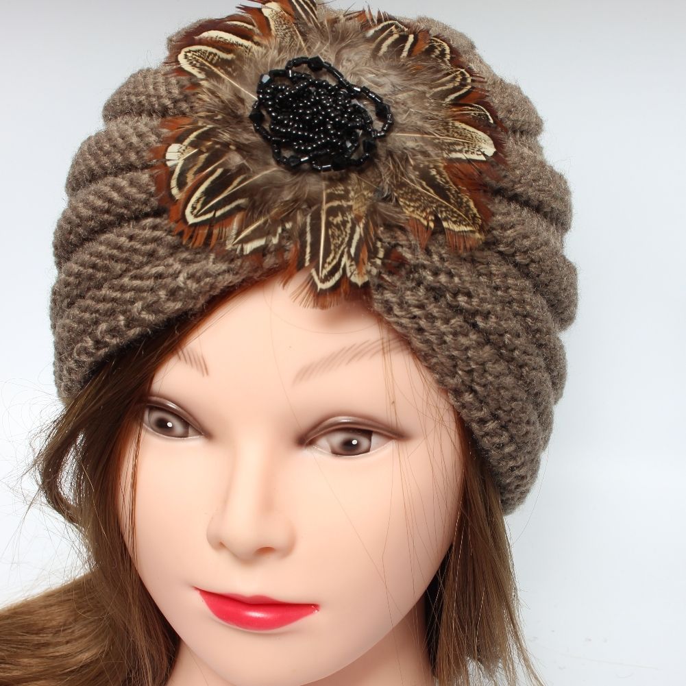 Damen Turban Kopfbedeckung Fashion Feder Blume Gestrickt