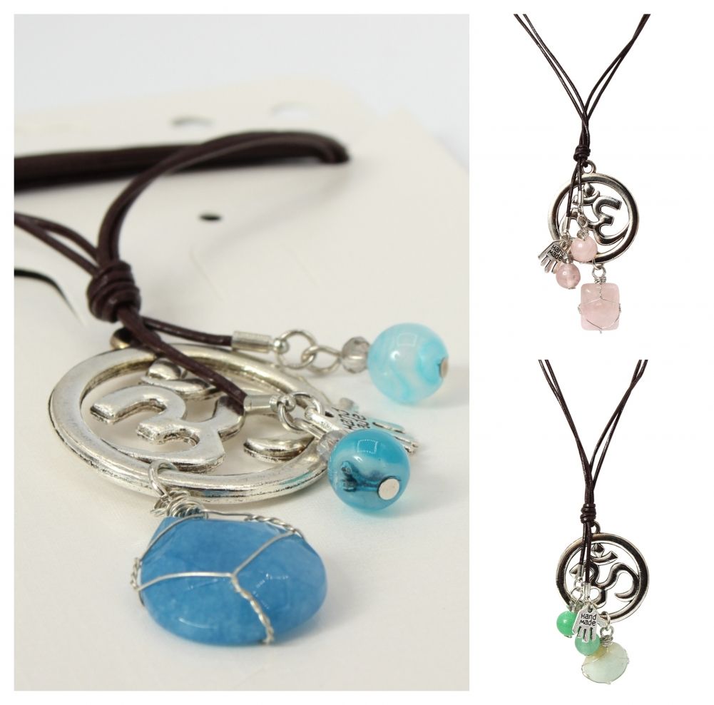 Halskette mit Om -Zeichen Anhänger Handarbeit Mehndi Vintage Geschenkidee Amazonit