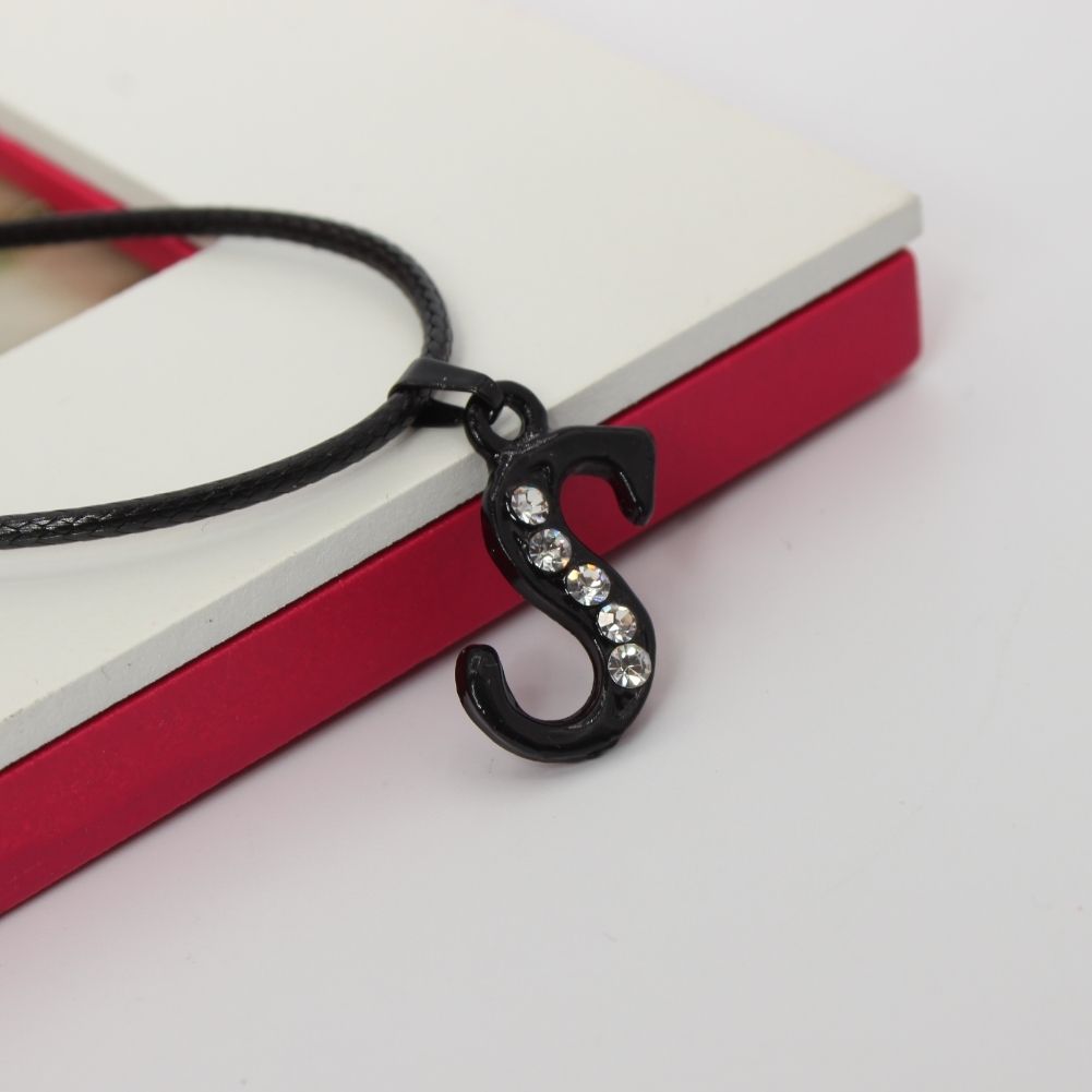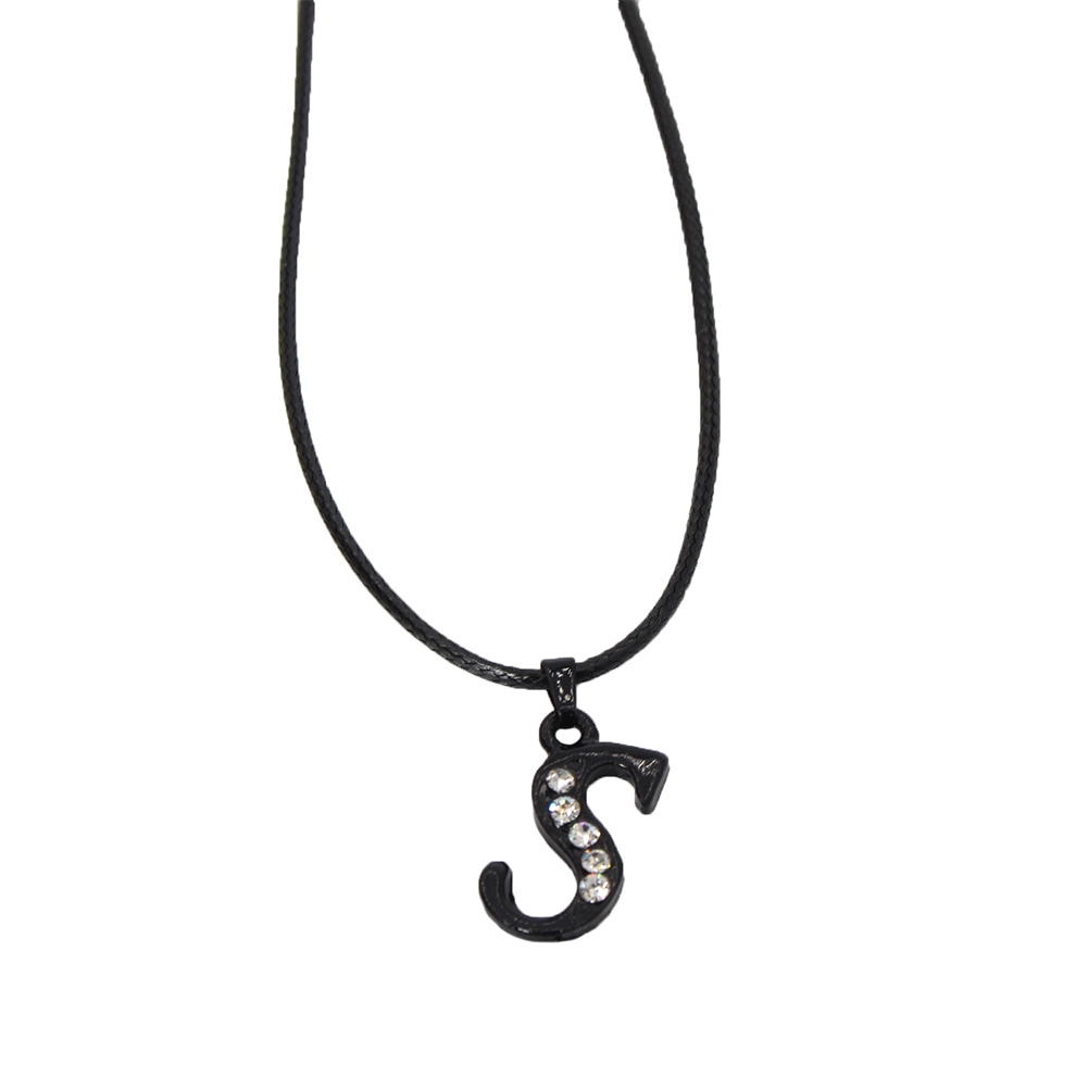 Halskette mit Strass Buchstaben Anhänger Schwarz