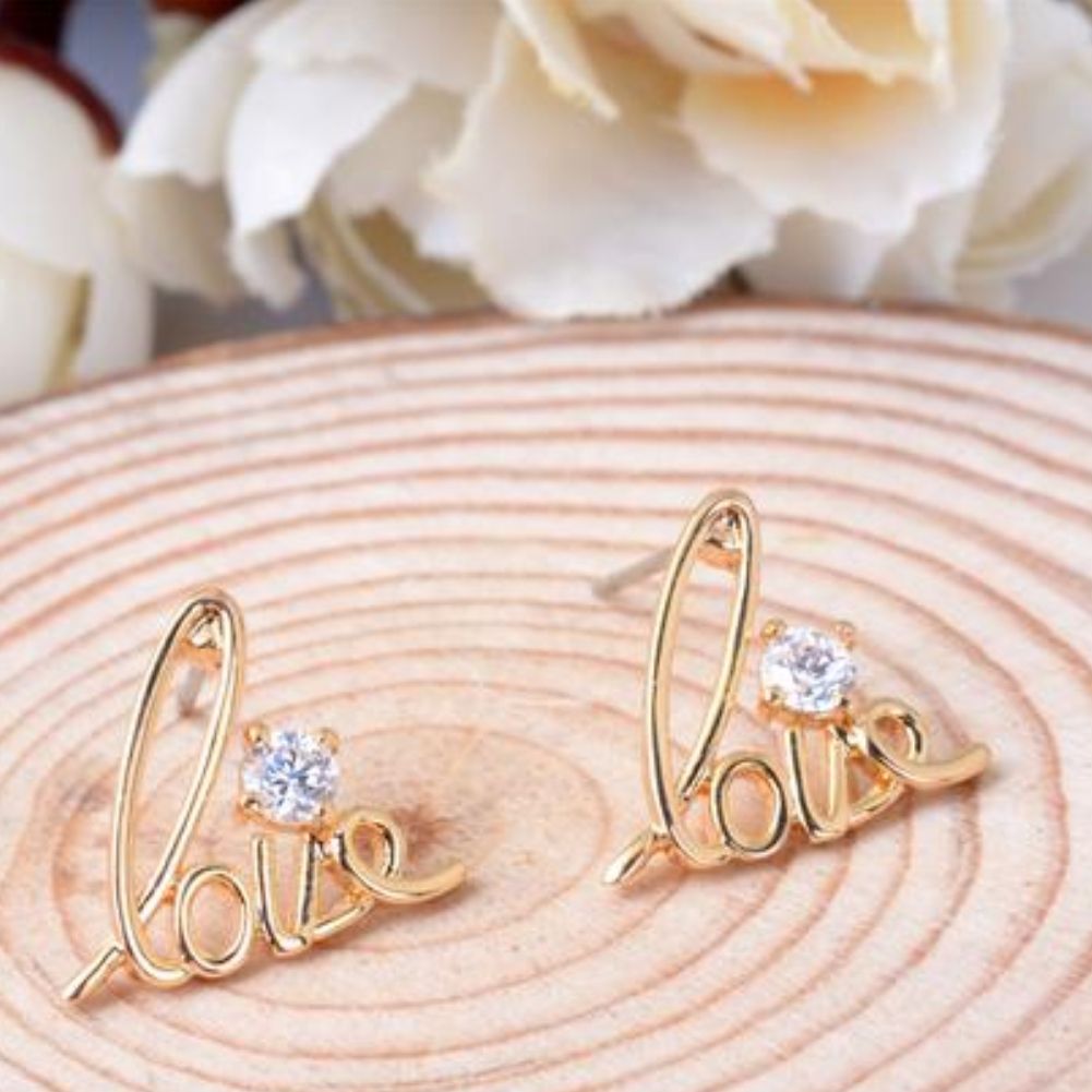 Diese, mit Strass verzierten "Love" Ohrringe, verleihen Ihr den perfekten Look.
