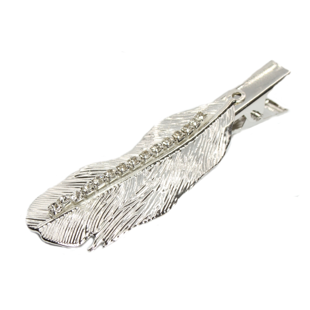 Metal Haarklammer Feder Strass