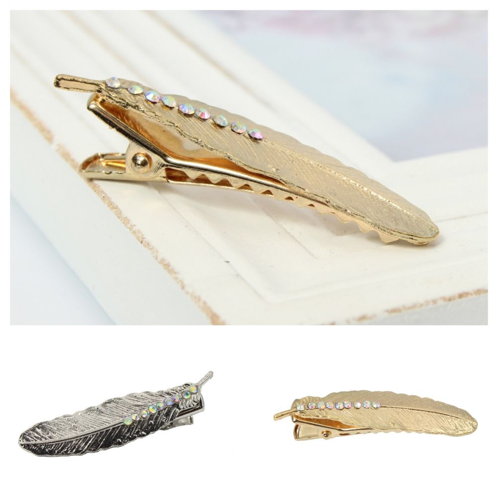 Metal Haarklammer Feder mit Strass