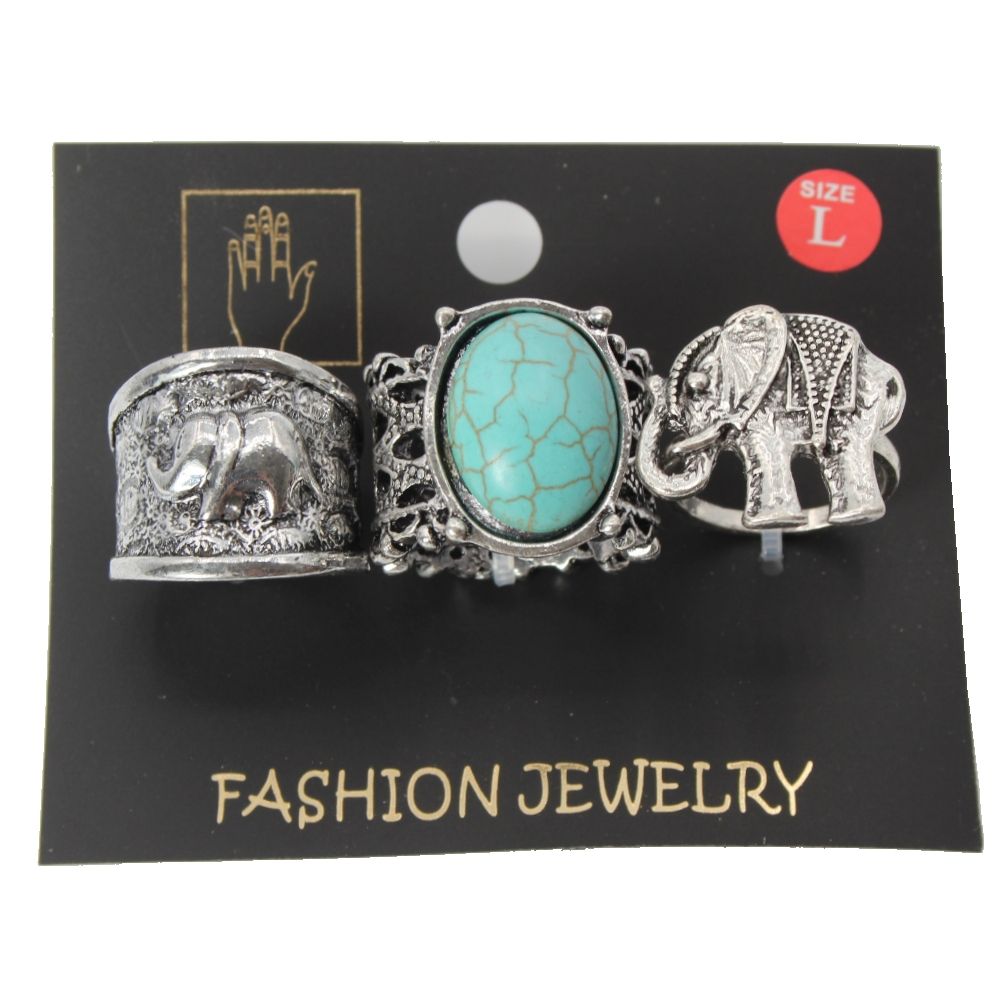 Ringe 3 er Set Midi Fingerspitzenring mit Elefantenmotiv