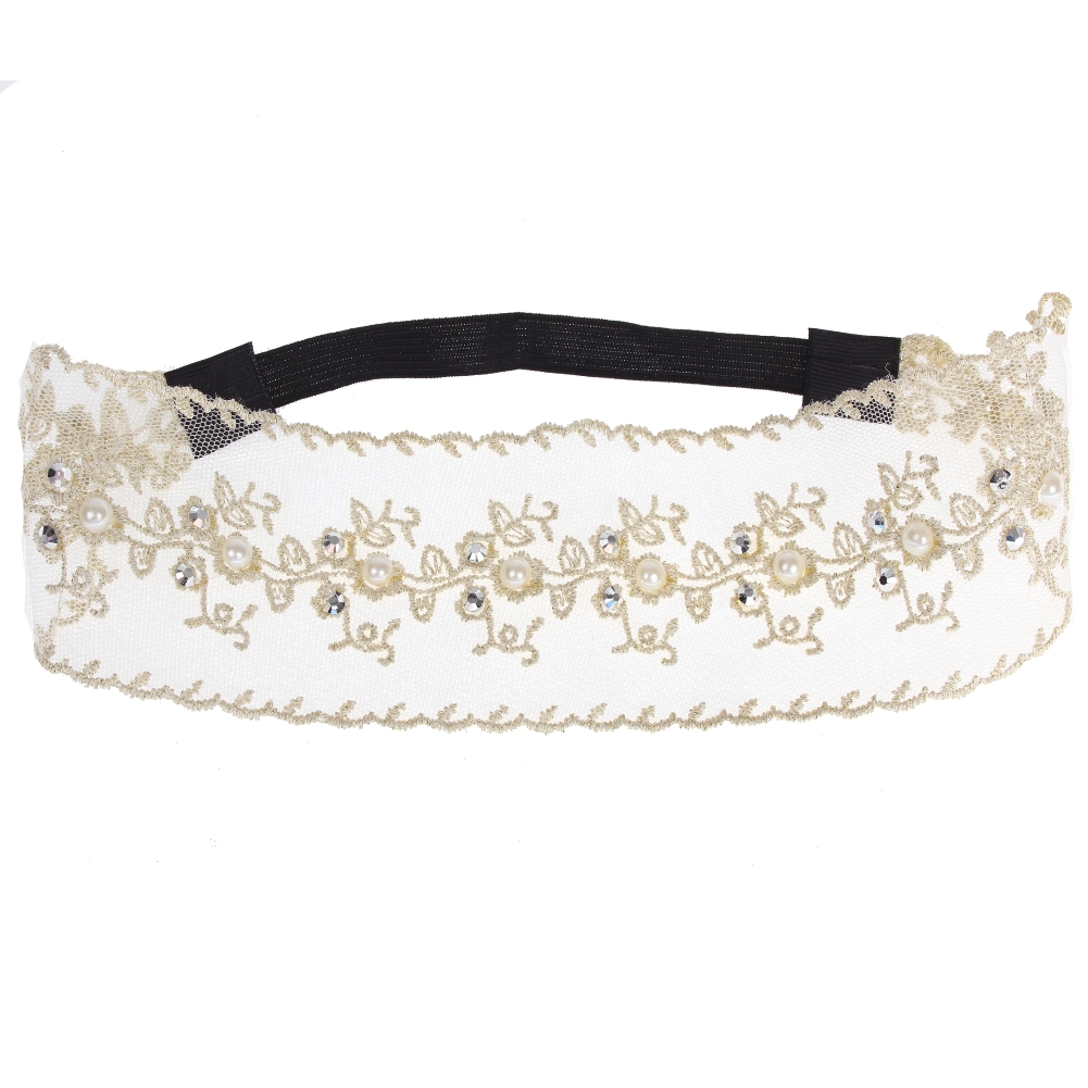 Spitzenstoff Haarband mit Strass und Perlen